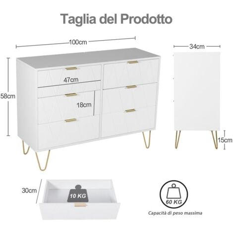 Mobiletto Ingresso Bagno Cassettiera K45 4 Cassetti + 2 Ante - Mobile Bagno/ingresso, 110x80x35cm, Bianco/rovere Comodino Con Ante