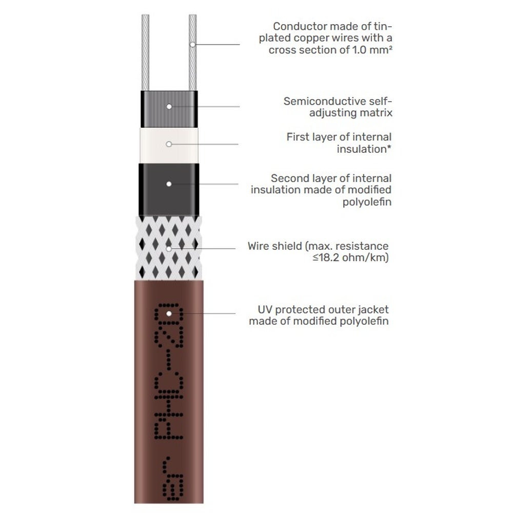 Prevenzione Gelo Cavo Scaldante Antigelo No Frost 2 Metri - 50W/M Con Termostato - Senza Spina 2 Metri Senza Spina