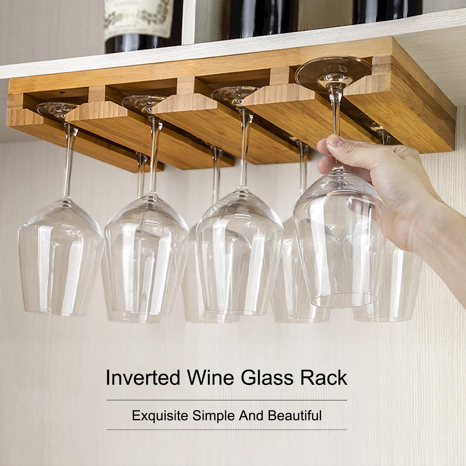 Portabicchieri da vino elegante in metallo nero, da installare sotto armadi o mensole. Lunghezza 40.5 cm, tiene 4-5 bicchieri. Design retrò e funzionale, con viti e copriviti inclusi per montaggio facile. Perfetto per bar, cucina, sala da pranzo. Decora e organizza con stile!