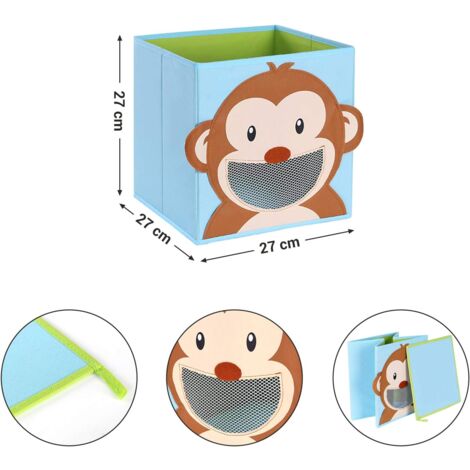 Ceste Pieghevoli Set 4 Ceste Portaoggetti AXHOP Per Bambini - 33x33x33cm, Con Stampa Animali - Per Giocattoli, Libri, Organizzazione Lino E Metallo