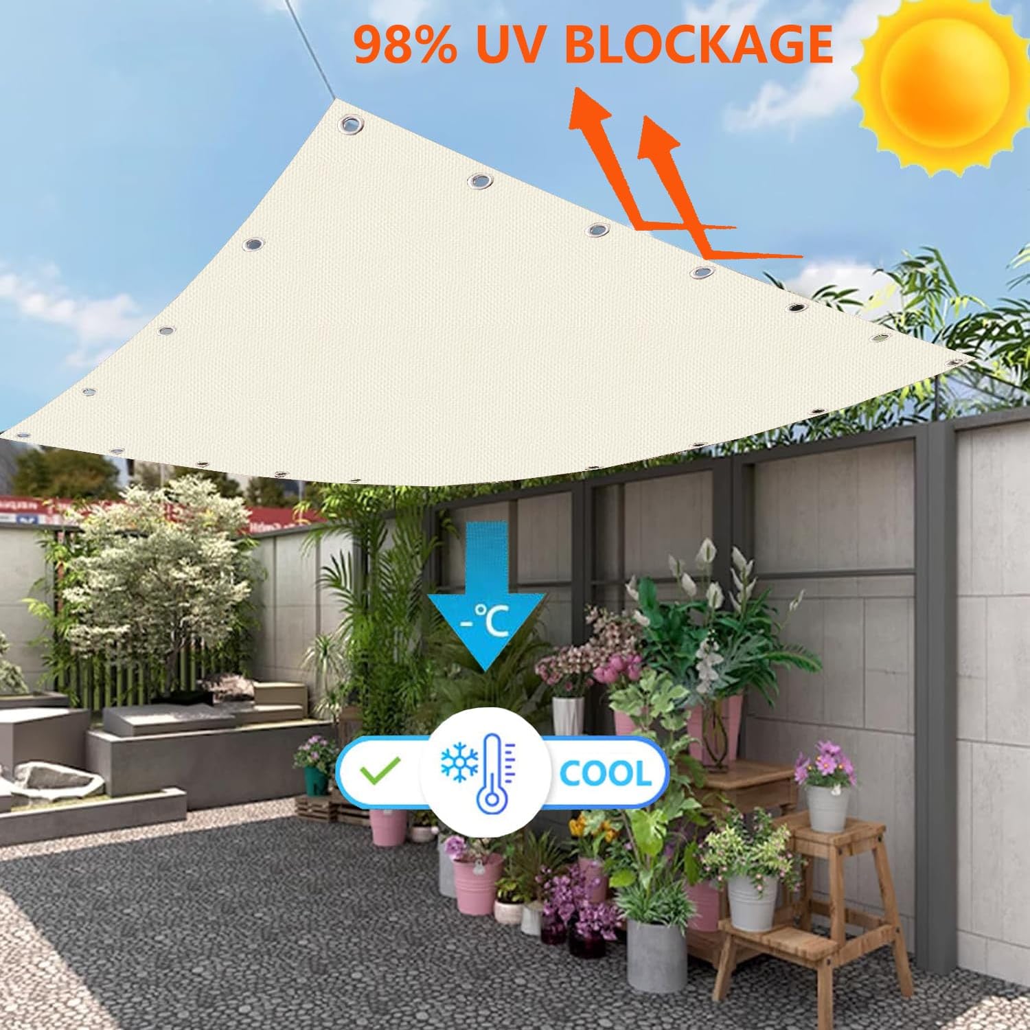 Tenda da sole in tessuto di poliestere da 280 g/m², dimensioni 300x250 cm, con balze incluse. Impermeabile (colonna d'acqua 600mm) e protezione UV60+, resistente a muffa e strappi. Facile da installare con passanti cuciti, ideale per rinnovare il tuo balcone senza cambiare la struttura. Pratica, duratura e stylish.